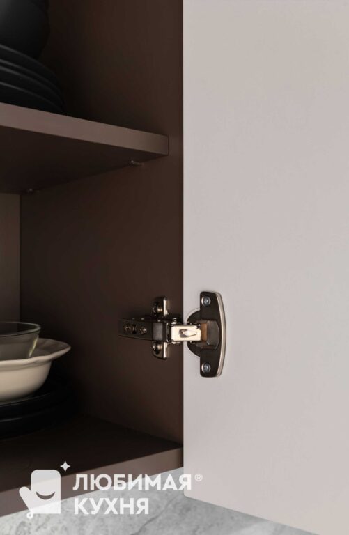 Кухня вне времени: Искусство утонченного минимализма.В этой кухне царит атмосфера утонченного минимализма, где каждый элемент продуман до мелочей. Серые матовые фасады шкафов создают монолитное пространство, сливаясь с фоновой плиткой под мрамор с выразительными прожилками. Акцент делается на подвесном модуле над рабочей зоной, выполненном с четкой вертикальной фрезеровкой, напоминающей строгий шрифт или ритмичный рисунок. Центральным элементом, вносящим в интерьер нотку природной текстуры, выступает кухонный остров. Черный смеситель с лаконичным изгибом идеально гармонирует с рабочей поверхностью и встроенной техникой.