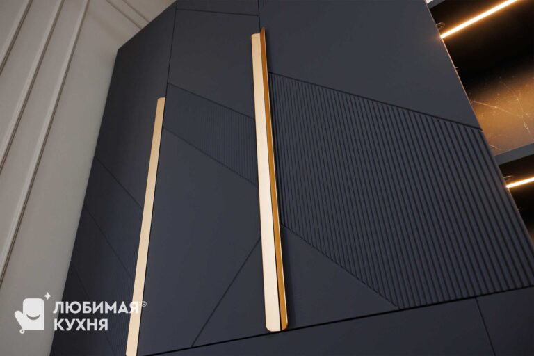 Двери: фасады тумбы МДФ в ТРП Квазар, фрезеровка Версаль, стеновая панель МДФ в ТРП Блэнд, фрезеровка Альберо